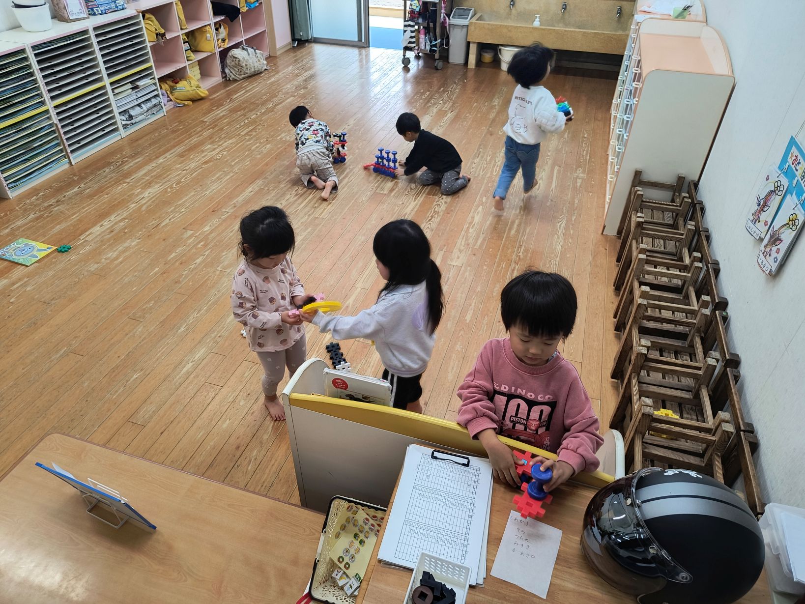 寒さが一層厳しくなってきましたが、あかぐみのみんなはとっても元気!隙あらば「おそといきたい!!」と言っています^^1月は製作をとってもがんばってくれました。お店屋さんごっこに節分製作…。様々な道具や素材に触れながら楽しみました♪