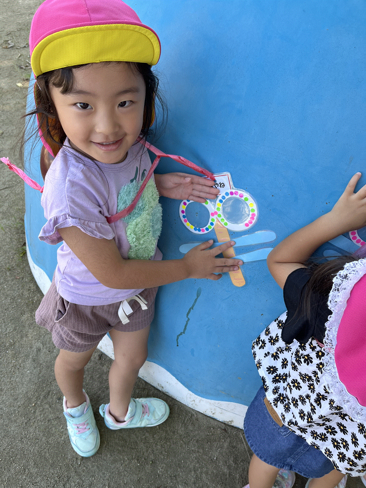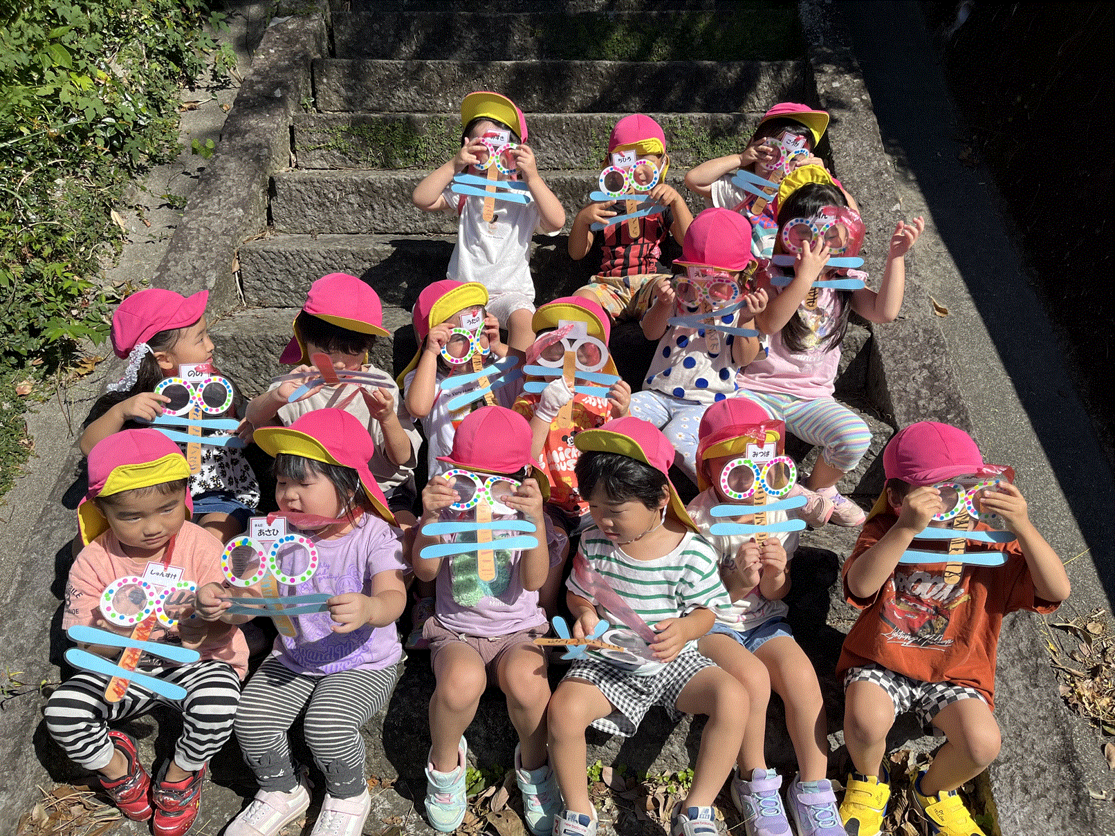 少しずつ涼しくなり、天気のいい日はお外遊びを楽しんでるあか組さん♪製作で作ったとんぼを持ってお外へ。「とんぼの目が水色になったー‼」「木の色にもなるよ‼」とたくさんの発見があったようです。とんぼはお家に持って帰るので、また違う発見があるかもしれませんね(^^)/