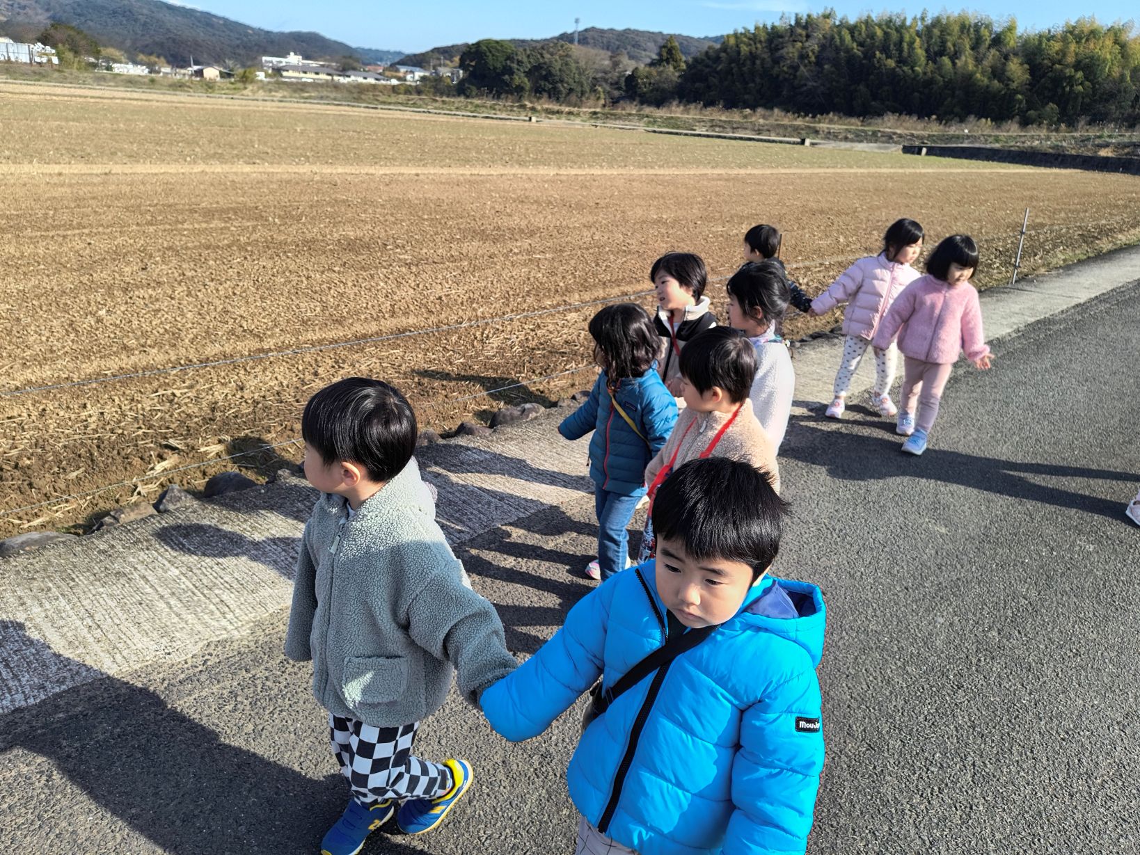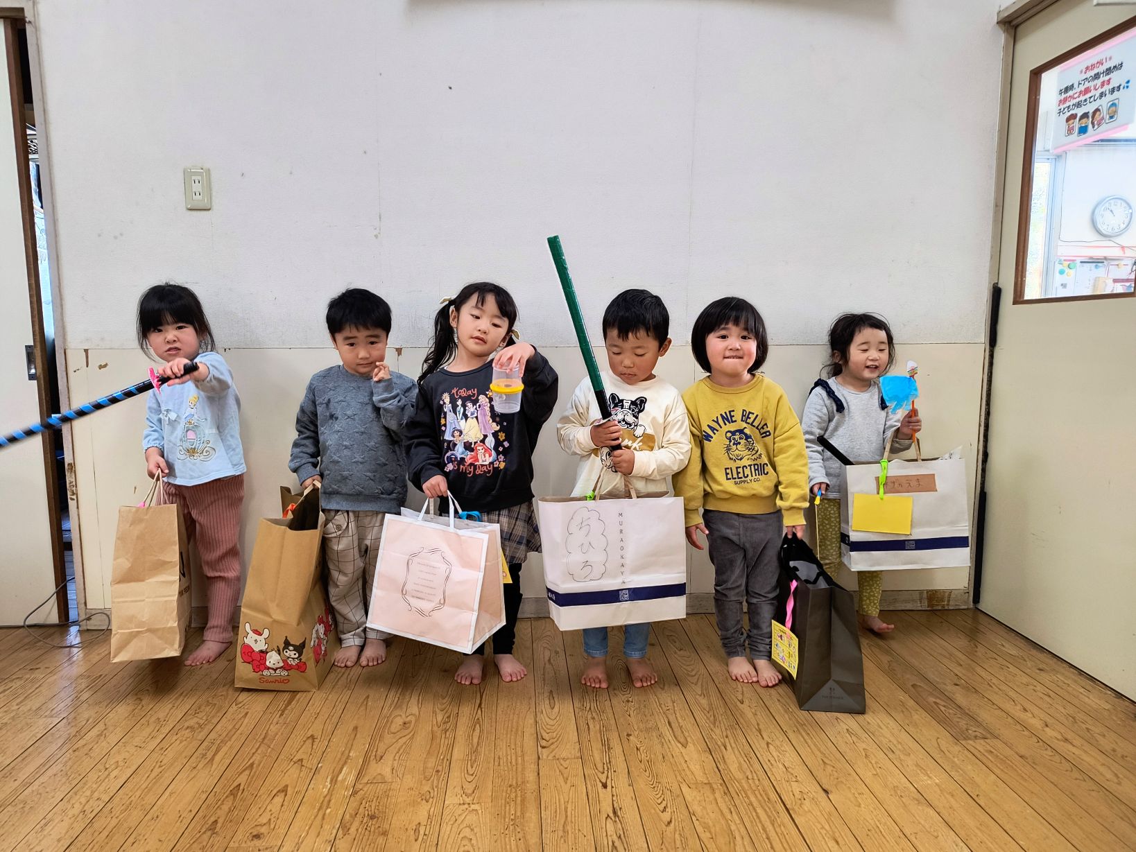 おゆうぎ会が終わりましたが、子どもたちは曲がかかると嬉しそうに踊りだしています!!「たのしかった」「またやりたい」という子どもの声が聞かれホッとしています♪練習風景を1枚、そして、リハーサル終わりにコミュニティー会館から歩いて帰った時の写真を1枚載せています。