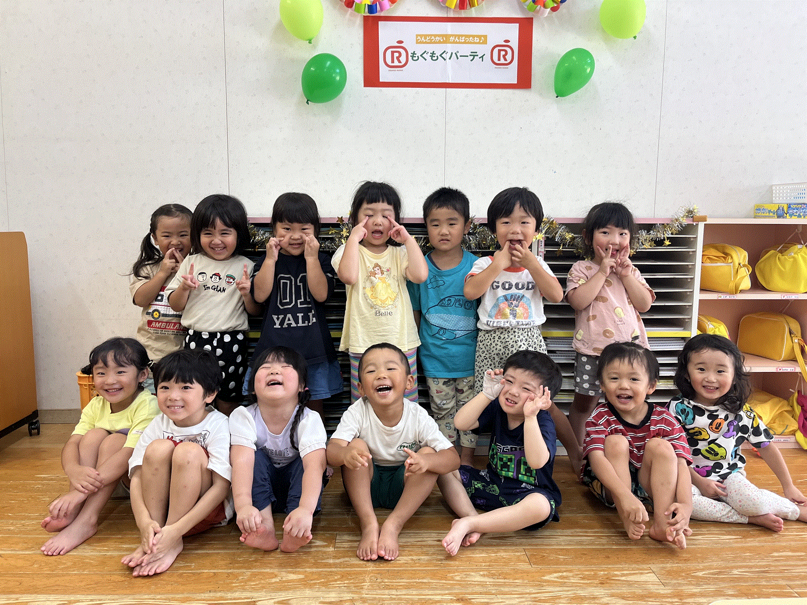 暑い中、子どもたちはとっても元気に遊んでいます。リズムや歌も少しずつ覚えて着々と準備が進んでいます♪