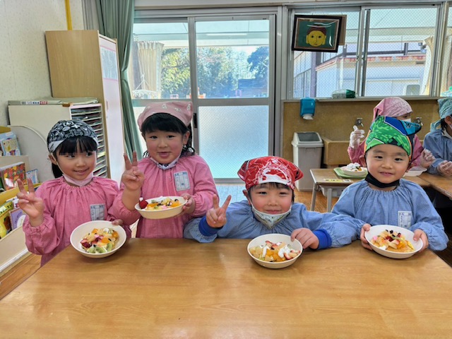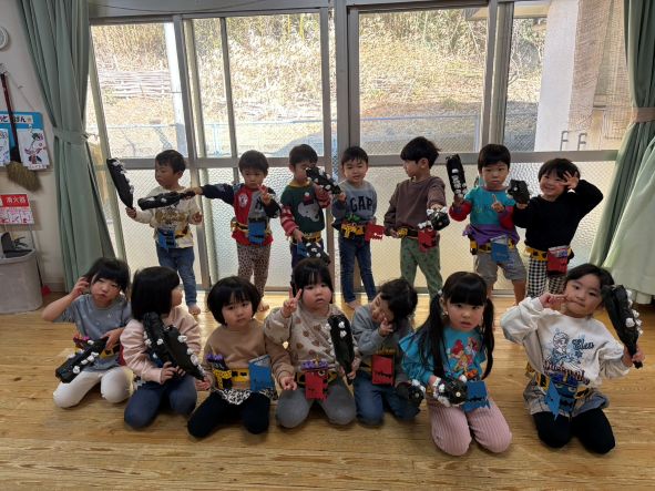 今年度も元気いっぱいのきいぐみさん(^^)/保育園生活も、残り3カ月になりましたが、毎日笑顔で楽しく過ごしたいと思いますのでよろしくお願いします!お正月遊びでは、羽子板やカルタ、自分たちで作った福笑いをして大盛り上がりでした♪又、お店屋さんごっこでは、みんなお目当ての品物が買えて満足そうな姿を見せてくれました(^_-)-☆来月から午睡なしでお勉強が始まります!今から規則正しい生活を頑張りましょう(^^)/